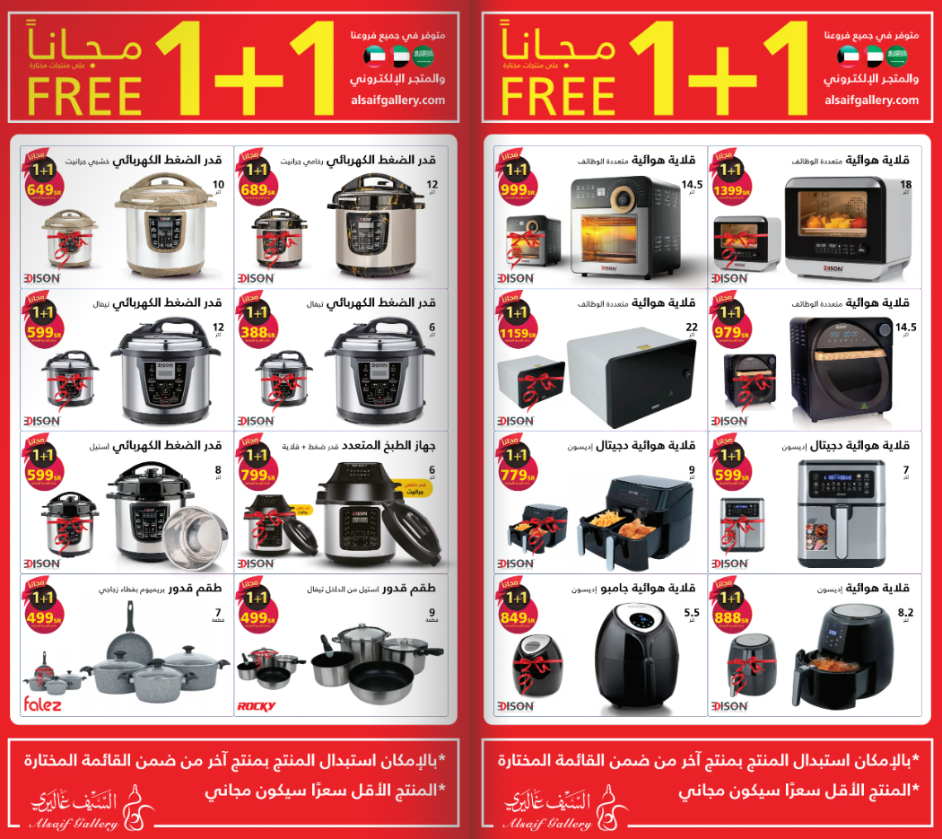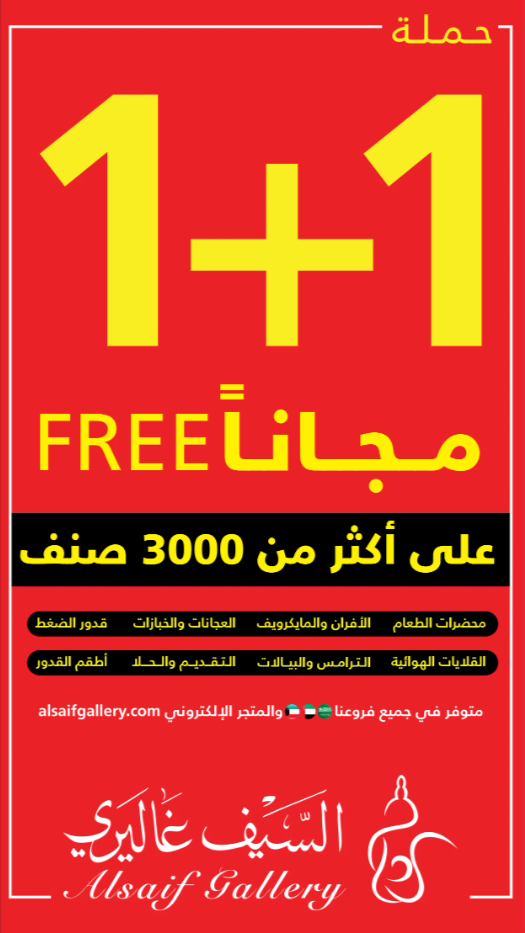 1 + 1 = 1 only with Al Saif Gallery!! Buy one product and get the second for free The offer includes more than 3,000 products in all their branches and the application The offer is valid from October 25 to November 10 عروض السيف غاليري 1 + 1= 1 فقط مع السيف غاليري !! اشتر منتج واحصل على الثاني مجاناً العرض يشمل أكثر من 3000 منتج في جميع فروعهم والتطبيق العرض ساري من 25 أكتوبر إلى 10 نوڤمبر للمزيد من خلال الرابط التالي لمتابعة بقية العروض أنتقل للصفحةا لتالية لمتابعة بقية العروض أنتقل للصفحةا لتالية لمتابعة بقية العروض أنتقل للصفحةا لتالية لمتابعة بقية العروض أنتقل للصفحةا لتالية