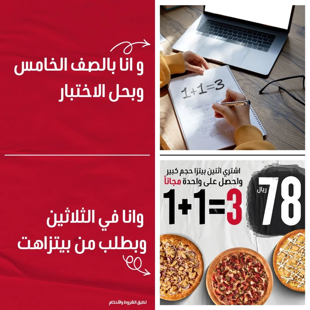 ما في غير بيتزاهت يفهمك ويجيك بعرض الـ 3=1+1..