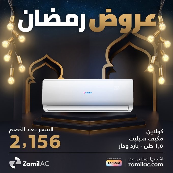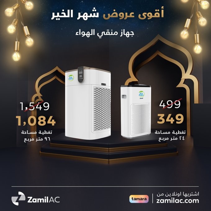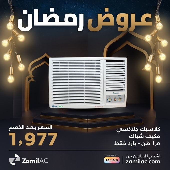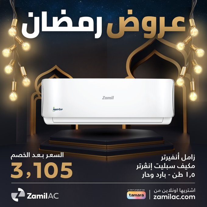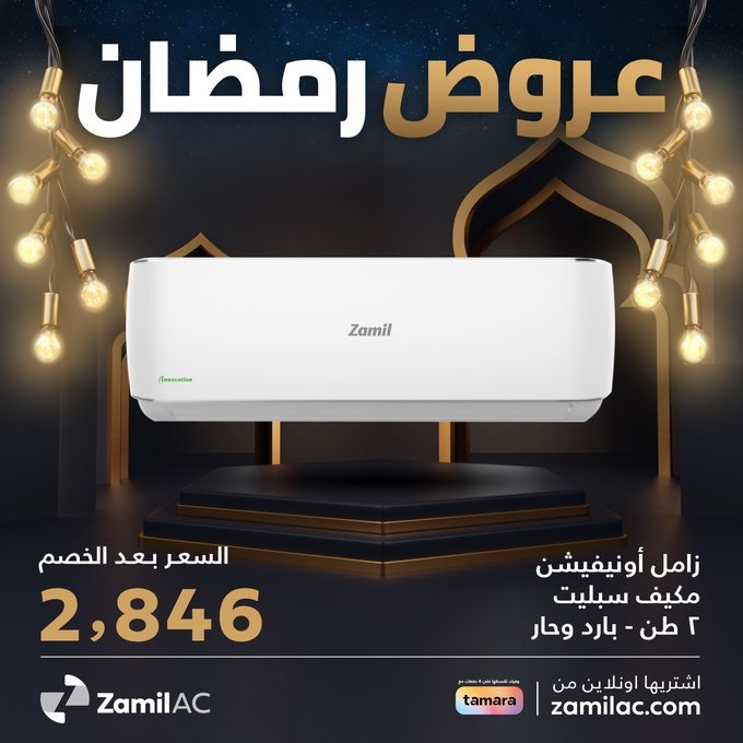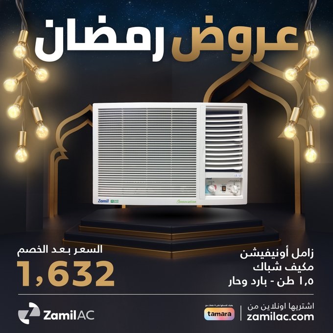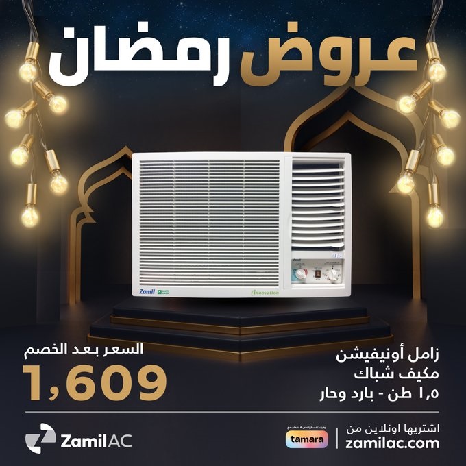 عروض مكيفات الزامل عروض غير في شهر الخير .. خصومات تصل الى ٢٥٪ على المكيفات ومنقيات الهواء تسوّق بكل سهوله عبر الموقع الإلكتروني او حمل التطبيق وعساكم من عواده للمزيد من خلال الرابط التالي