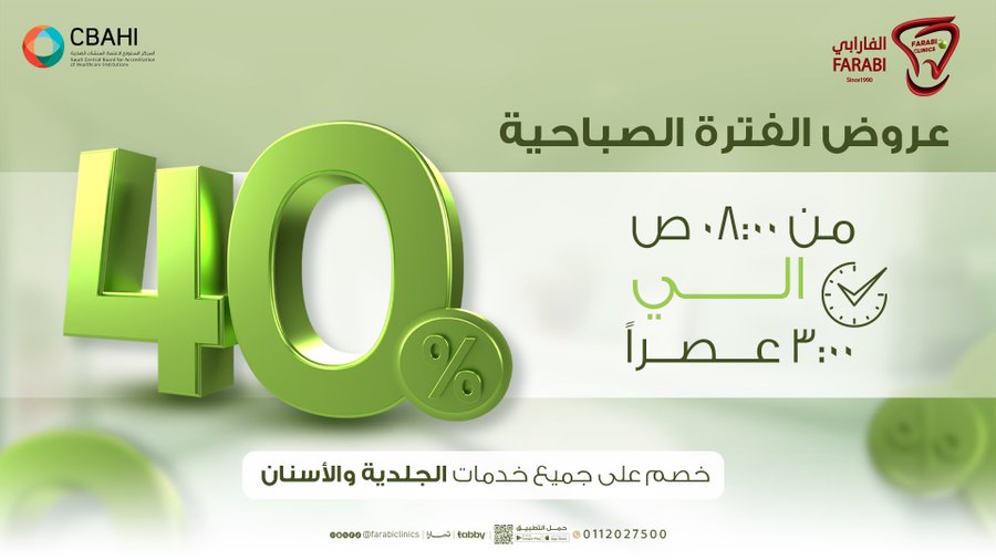 خصم 40% على جميع الخدمات الجلدية والأسنان !