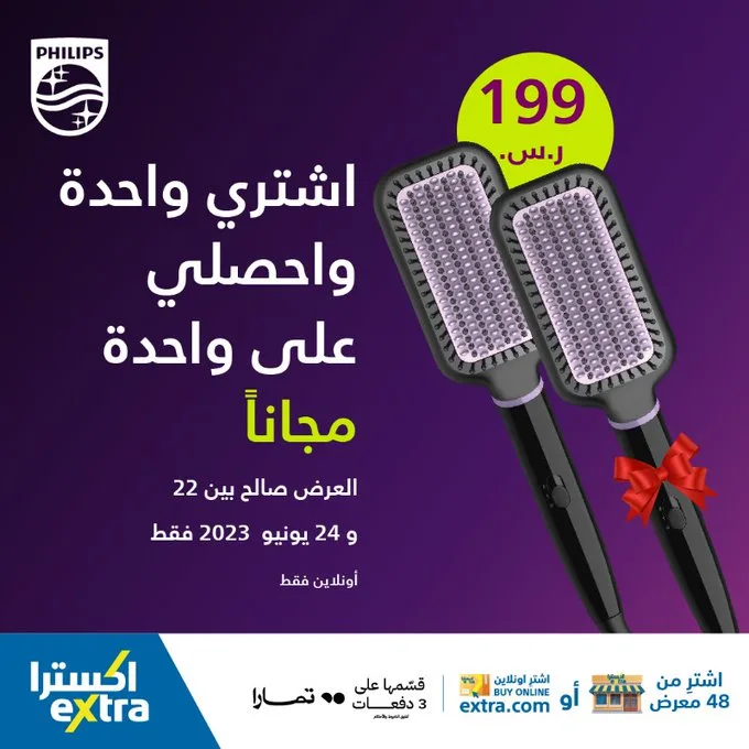 اشتري فرشاة Philips لتمليس الشعر بـ199 ريال فقط واحصلي على الثانية مجاناً!