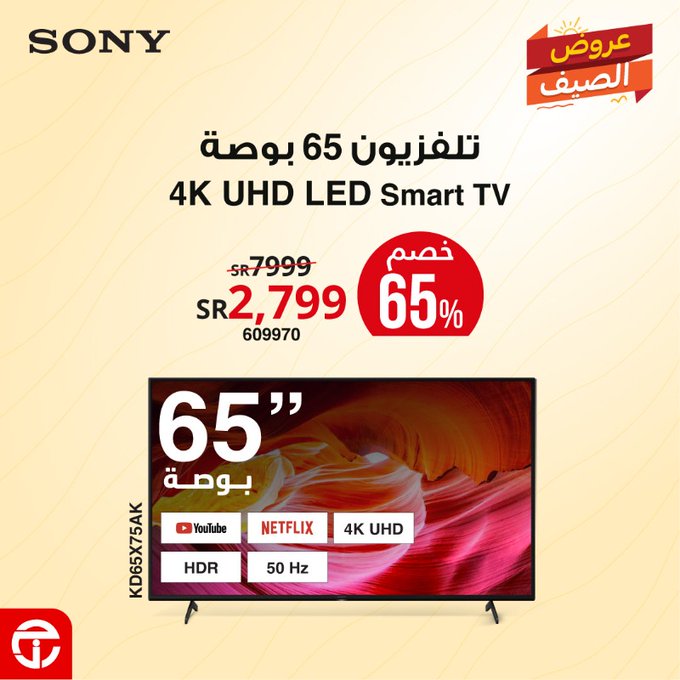 خصم يصل إلى 65% على تلفزيون سوني 65 إنش / 4K 65 inch 4k
