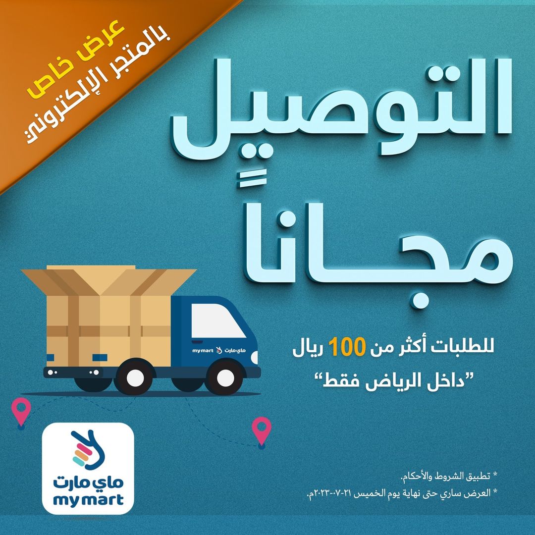 عرض ماي مارت داخل الرياض التوصيل مجاناً للطلب من المتجر بأكثر من 100 ريال العرض ساري حتى نهاية يوم الخميس 21/7/2023م للتسوق من خلال الرابط التالي