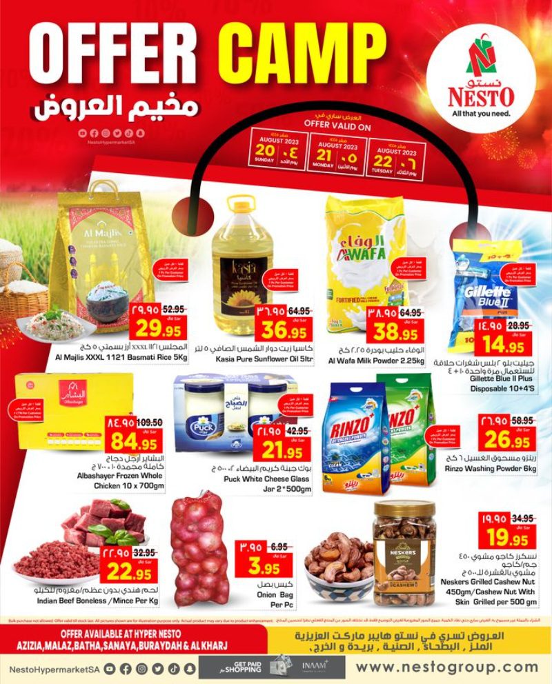 عروض اسواق هايبر نستو الرياض الخرج بريدة لـ 3 أيام فقط لا يفوتك مخيم العروض في أسواق نستو.. صفقات لا تقبل المنافسة وخيارات لا نهاية لها تنتظر لتجعل يومك أكثر إشراقا سارية من 20 أغسطس إلى 22 أغسطس 2023 Valid from August 20 to August 22, 2023 Available at Nesto Hyper Azizia, Malaz, Batha, Sanaya, Buraydah & Al Kharj لمتابعة بقية العروض أنتقل للصفحة التالية لمتابعة بقية العروض أنتقل للصفحة التالية