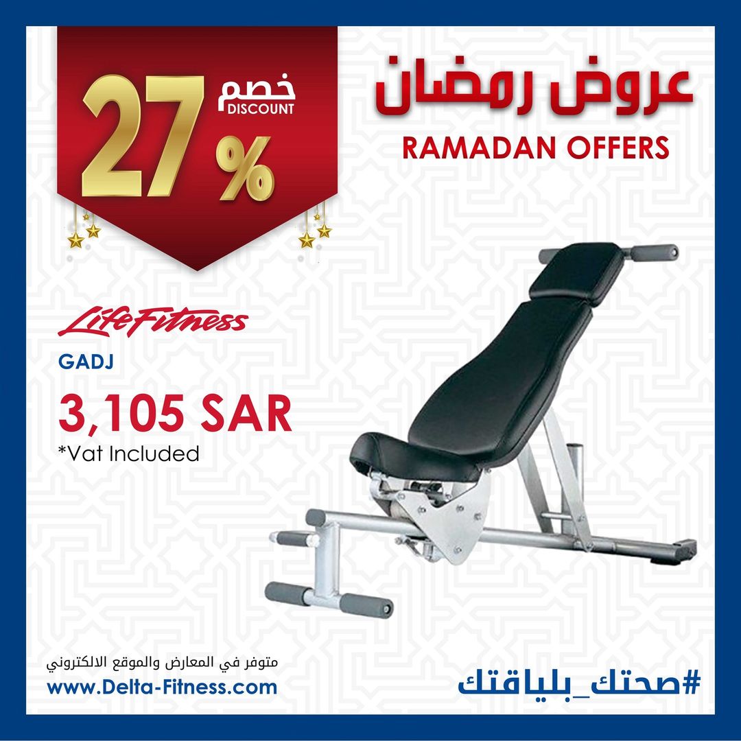عروض الأجهزة الرياضية من دلتا فتنس لا يفوتك.. عروض رمضان متوفرة الان في معارض دلتا فتنس ولايف فتنس في المملكة وعبر المتجر الالكتروني يسري العرض على منتجات مُختارة لغاية 10 ابريل 2023 أو حتى نفاذ الكمية تطبق الشروط والأحكام للمزيد من خلال الرابط التالي