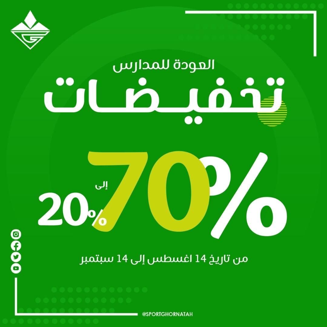 Back to school offer from Granada Sports Discounts from 20% to 70% in all exhibitions and the online store *Offer valid from August 14th to September 14th عرض العودة للدراسة من غرناطة للرياضة تخفيضات من %20 إلى %70 في جميع المعارض والمتجر الإلكتروني *العرض ساري من 14 أغسطس وحتى 14 سبتمبر
