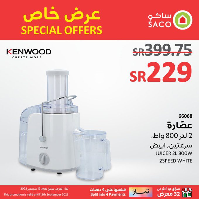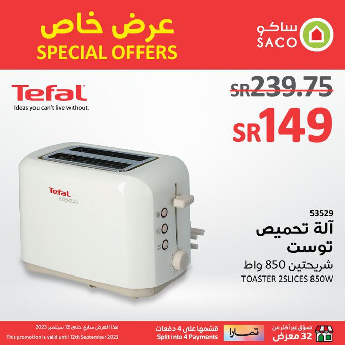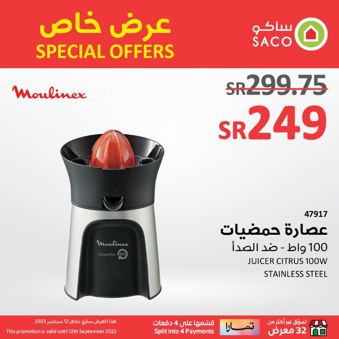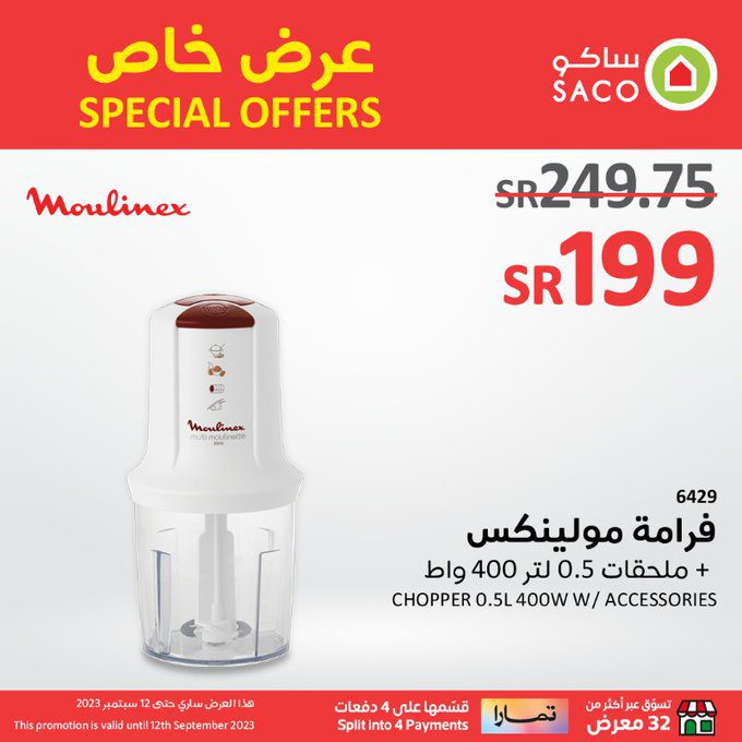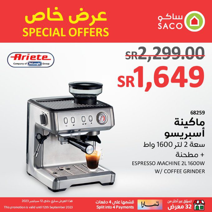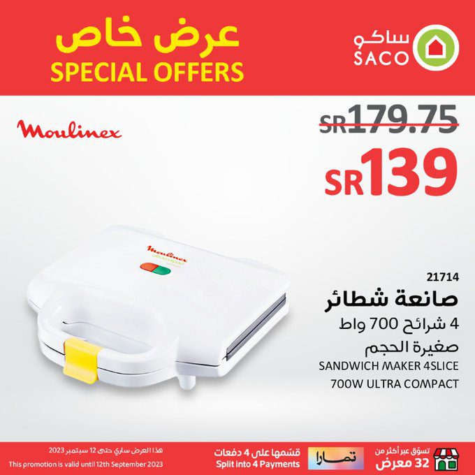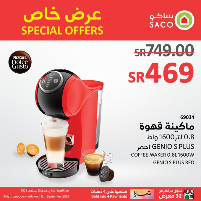 Take advantage of SACO's special offers. Valid until September 12th in all branches and online store عروض ساكو استغل الفرصة مع عروض ساكو الخاصة .. سارية حتى 12 سبتمبر في جميع الفروع وعبر المتجر الإلكتروني