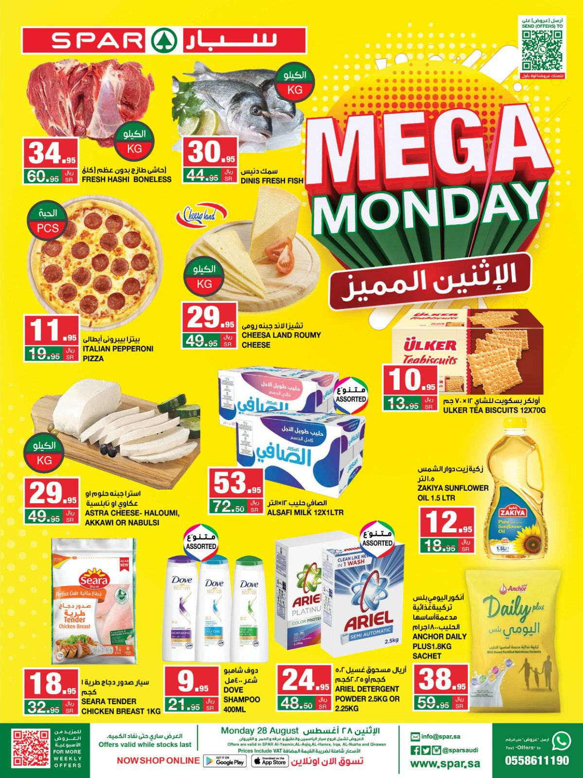 Don't miss the special Monday offers from Spar markets Valid for one day.. August 28th عروض اسواق سبار الإثنين فقط لا تفوتكم عروض الإثنين المميز من أسواق سبار سارية لمدة يوم واحد.. 28 أغسطس لمتابعة بقية العروض أنتقل للصفحة التالية