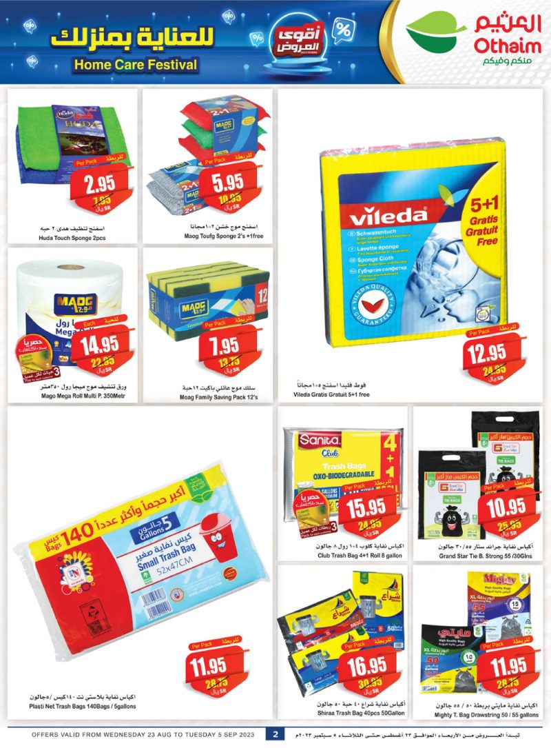 the strongest offers on cleaning products Go to Othaim for more cleanliness and more savings Offers are valid until Tuesday 5th of September or until stocks last عروض العناية بالمنزل من اسواق العثيم عروض بوقتها.. أقوى العروض على منتجات التنظيف روح للعثيم لنظافة أكثر وبتوفير أكثر تسري العروض حتى الثلاثاء 5 سبتمبر او حتى نفاد الكمية لمتابعة بقية العروض أنتقل للصفحة التالية لمتابعة بقية العروض أنتقل للصفحة التالية