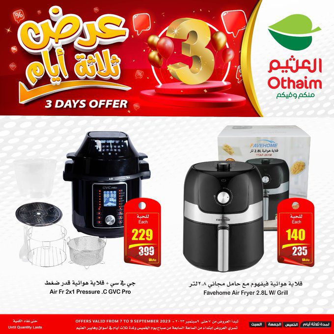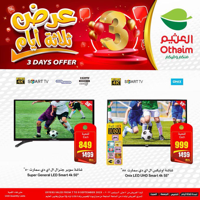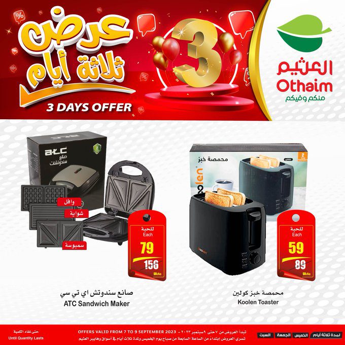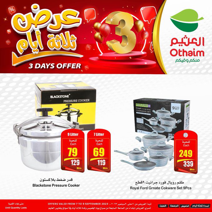 يبدأ العرض 7 سبتمبر وينتهي 9 سبتمبر او حتى نفاد الكمية