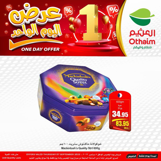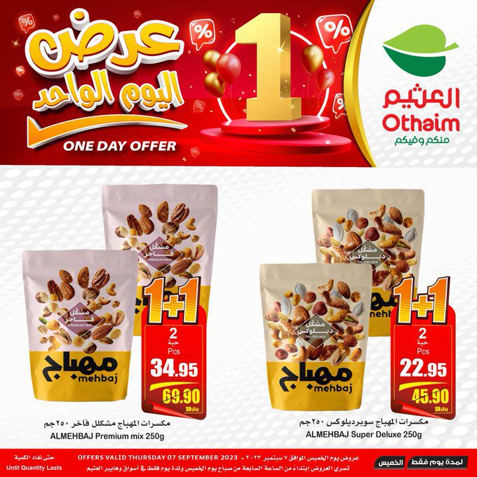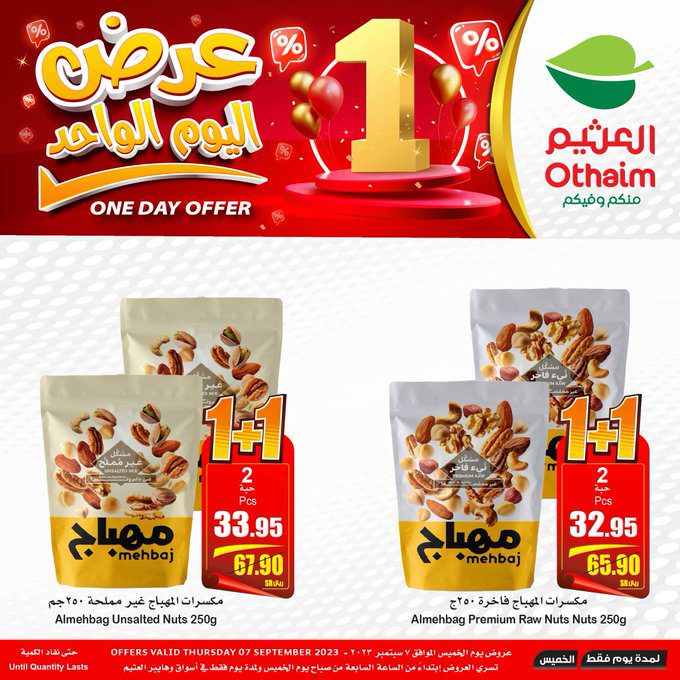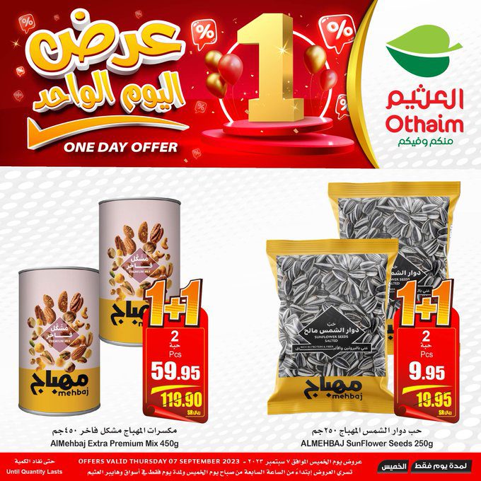 عروض اسواق العثيم الخميس فقط خميسك الونيس معنا غير.. منتجات بأفضل جودة و أفضل سعر روح للعثيم و وفر معنا! يبدأ العرض من الساعه 7:00 صباحا من يوم الخميس ولمدة يوم واحد فقط او حتى نفاد الكمية