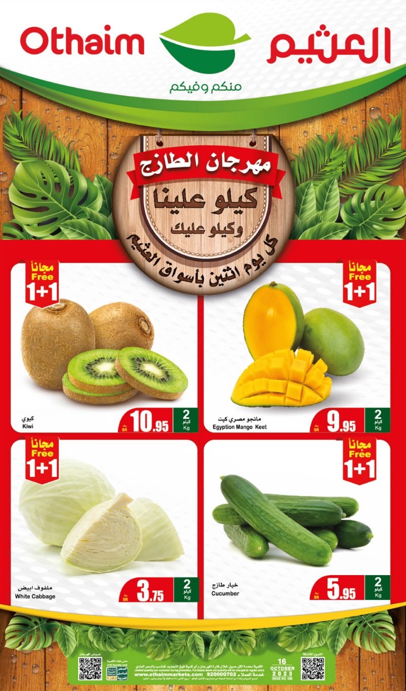 Go to Al-Othaim and leave the rest to us.. and shop at the Fresh Festival for one kilo and the second for free Fresh Monday offers, October 16, will continue until the end of the day or until stock runs out عروض مهرجان الطازج من اسواق عبدالله العثيم روح للعثيم و خلي الباقي علينا.. وتسوّق في مهرجان الطازج كيلو والثاني مجانًا تستمر عروض الاثنين الطازج الموافق 16 اكتوبر حتى نهاية اليوم أو بنفاد الكمية لمتابعة بقية العروض أنتقل للصفحةا لتالية لمتابعة بقية العروض أنتقل للصفحةا لتالية