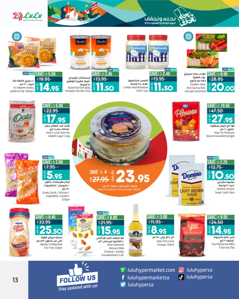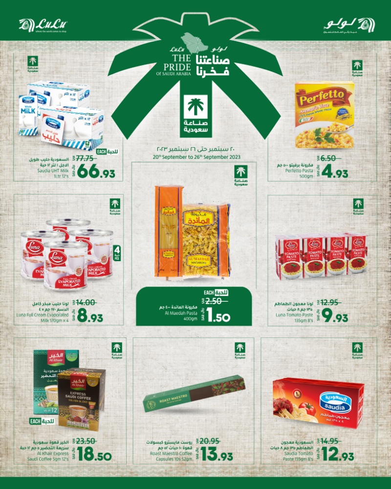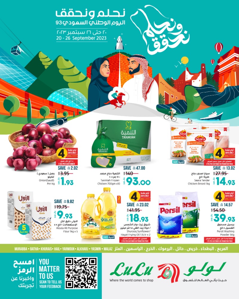 Celebrate our nation’s prideful day at LuLu! Grab your cooking essentials and other products at special offer prices at LuLuSA Riyadh, Hail, and Al Kharj stores