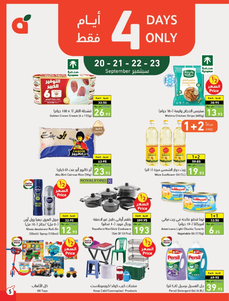 تسري هذه العروض من الأربعاء 20 سبتمبر إلى الثلاثاء 26 سبتمبر 2023م أو حتى نفاد الكمية