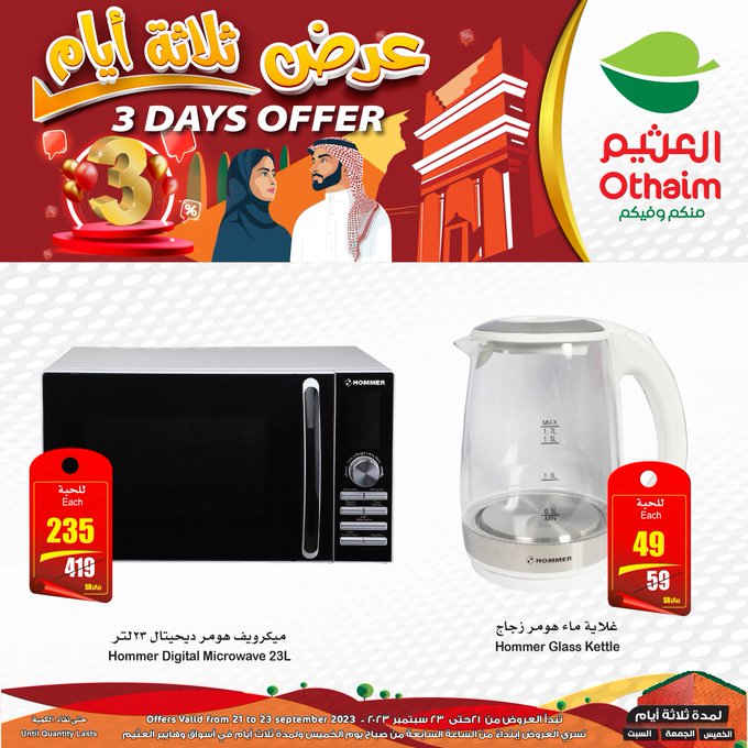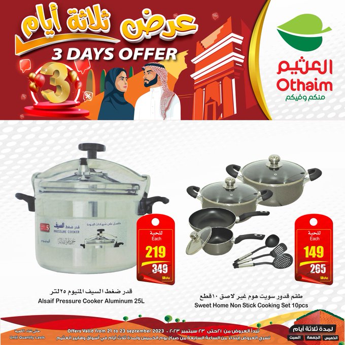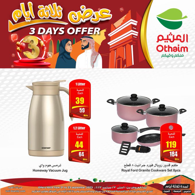 See what your home is missing and go to Al Othaim to complete it at the best prices.. The offer starts on September 21 and ends on September 23 or until supplies last عروض الويكند من اسواق العثيم شف وش ينقص بيتك وروح للعثيم يكمله وبأفضل الأسعار.. يبدأ العرض 21 سبتمبر وينتهي 23 سبتمبر او حتى نفاد الكمية
