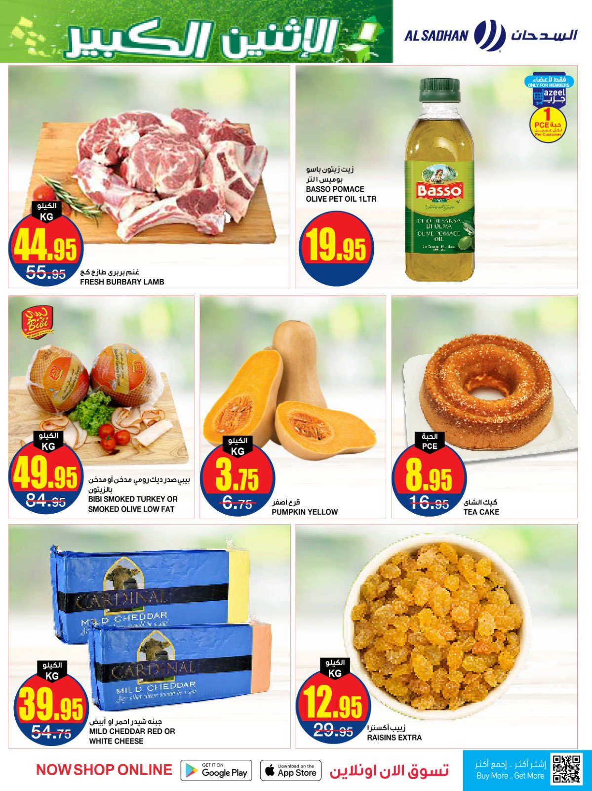 Don't miss the Big Monday offers at Al Sadhan Markets...special offers on everything you need Valid only on Monday, September 25, 2023 عروض اسواق السدحان الإثنين فقط لا تفوتك عروض الإثنين الكبير في أسواق السدحان.. عروض مميزة على كل اللي تحتاجه سارية فقط في الإثنين ٢٥ سبتمبر 2023 لمتابعة بقية العروض أنتقل للصفحةا لتالية