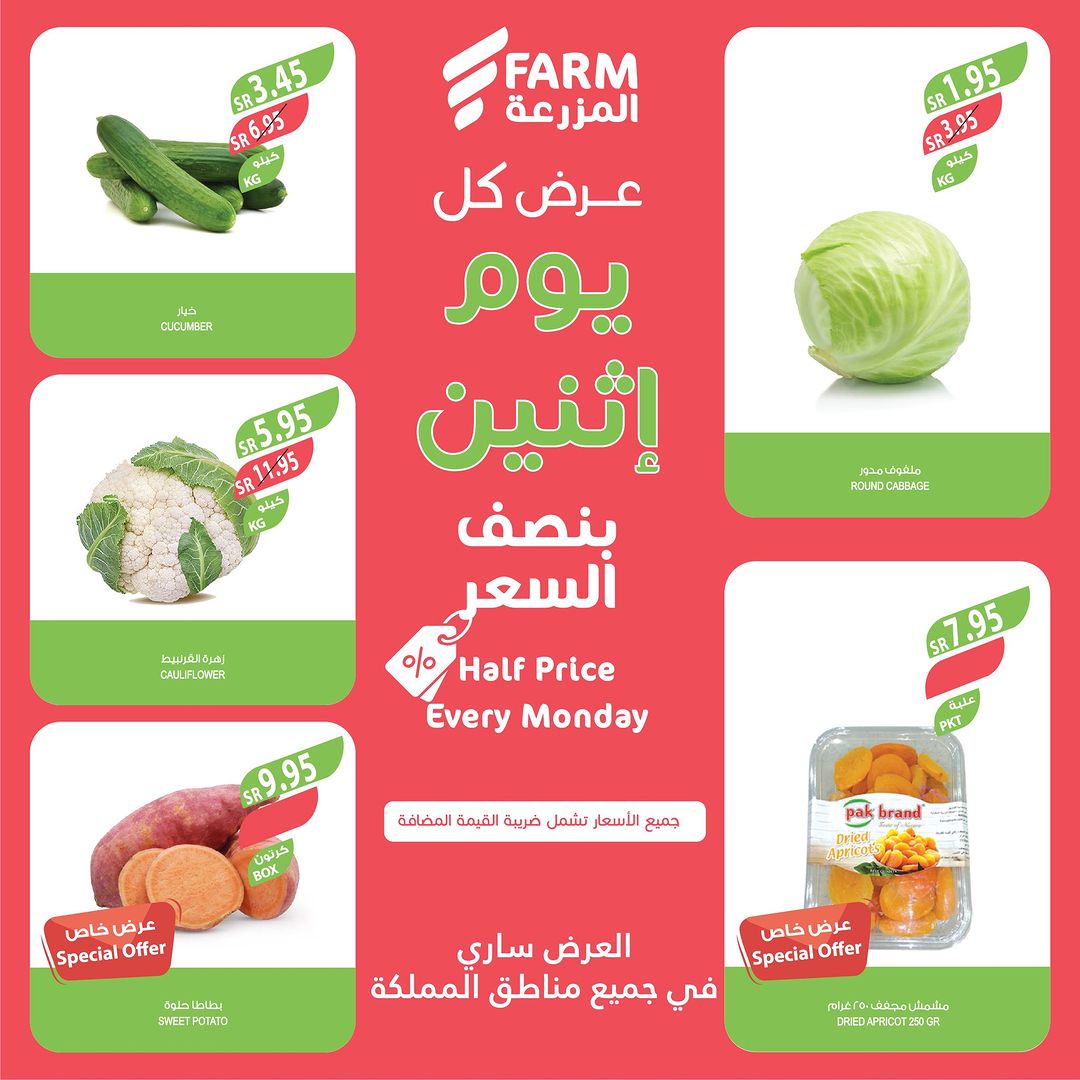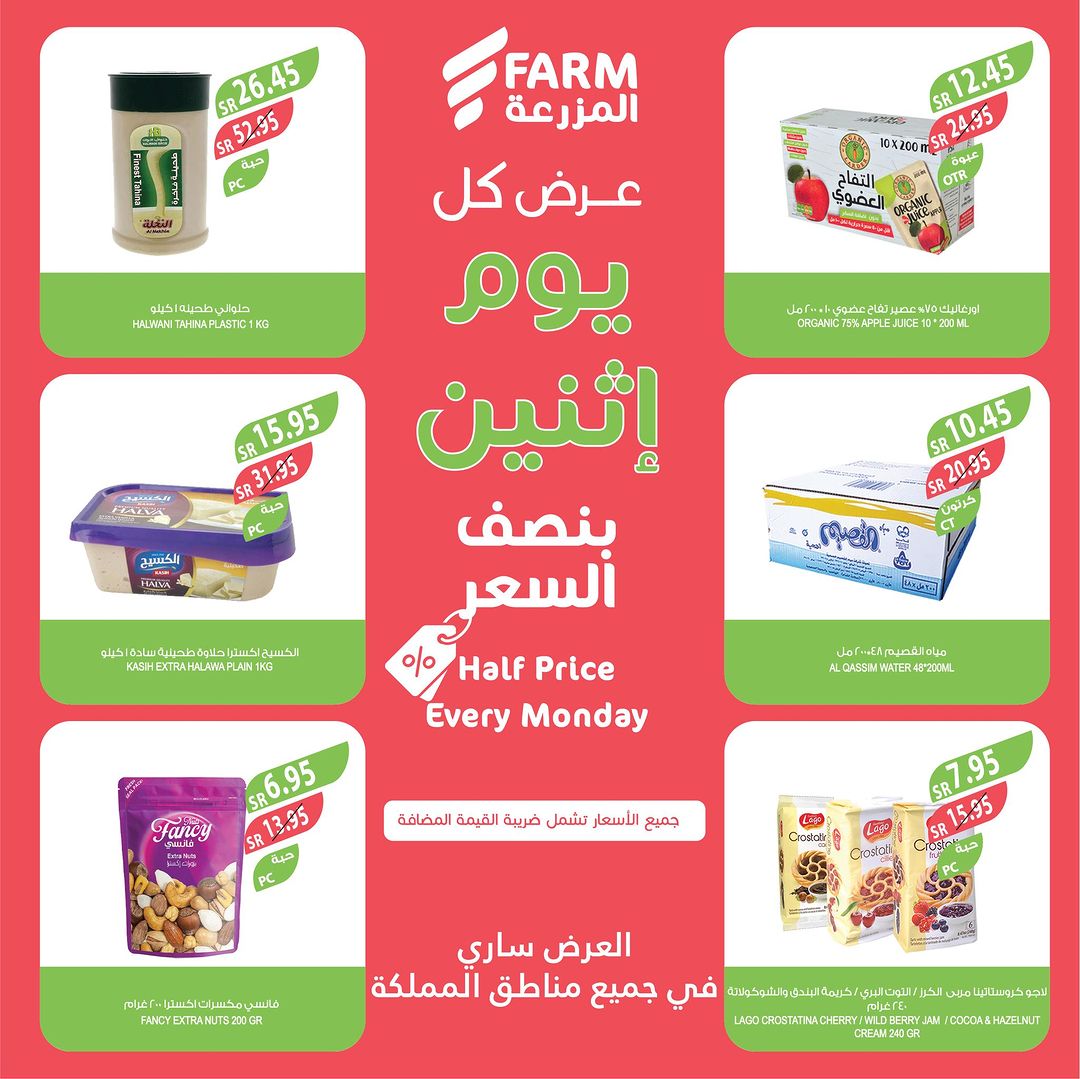 في المزرعة كما عودناكم عروض نصف السعر على منتجات بجودة عالية كل يوم اثنين