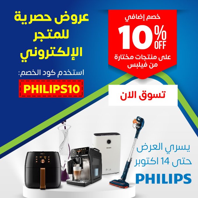 عرض نهاية الأسبوع من ساكو حصرياً للمتجر الإلكتروني.. احصل على خصم 10% إضافي على منتجات مختارة من فيلبس باستخدام كود الخصم PHILIPS10 العرض ساري حتى 14 اكتوبر للمزيد من خلال الرابط التالي