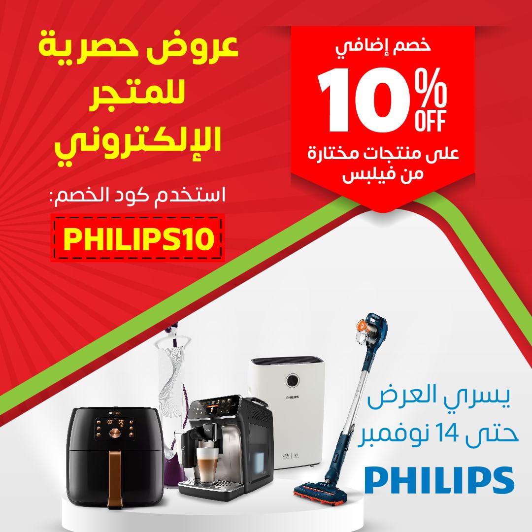 Exclusively for the online store.. Get an additional 10% discount on selected Philips products The offer is valid until November 14 Use code: PHILIPS10 عرض ساكو حصرياً للمتجر الإلكتروني.. احصل على خصم 10% إضافي على منتجات مختارة من فيلبس العرض ساري حتى 14 نوفمبر استخدم كود : PHILIPS10 للمزيد من خلال الرابط التالي