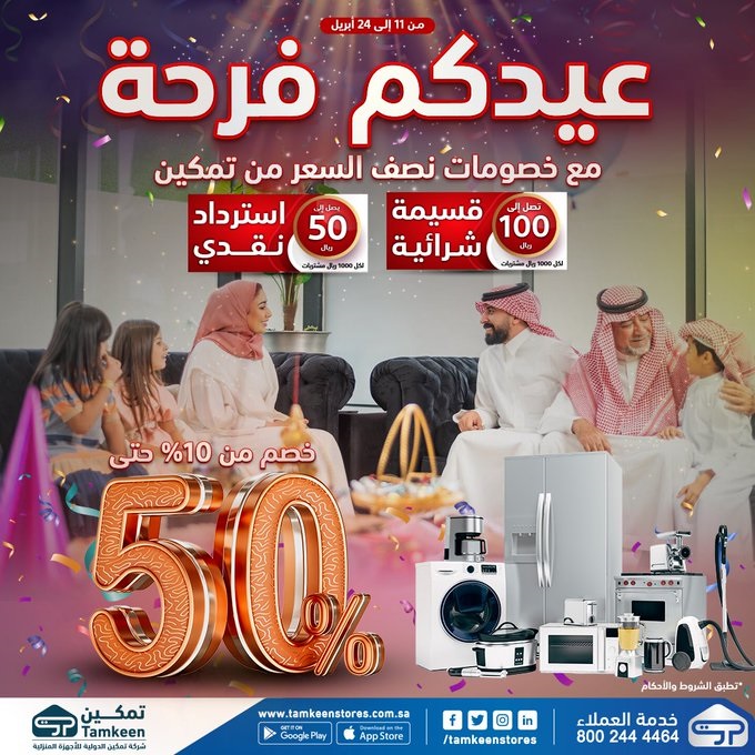 استمتع بعيدية تمكين.. خصومات تصل الى 50 %