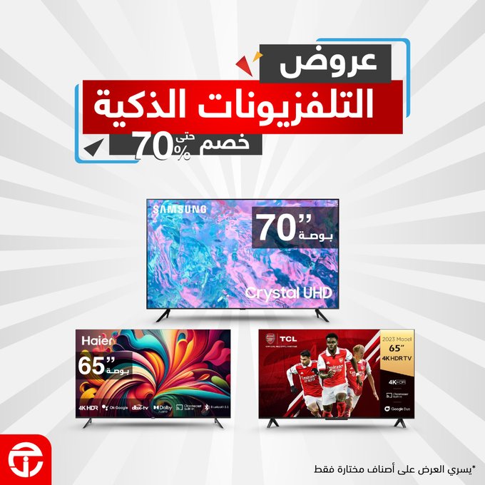 خصم يصل حتى 70% على التلفزيونات الذكية