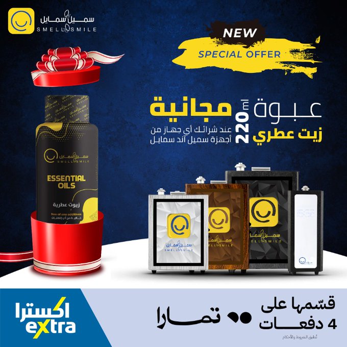 Exclusively for the website.. Receive an essential oil refill with your purchase of any Smile & Smile diffusers! عرض اكسترا حصريا للموقع الإلكتروني.. احصل على عبوة زيت عطري عند شرائك أي أجهزة تعطير سميل آند سمايل! للطلب من خلال الرابط التالي