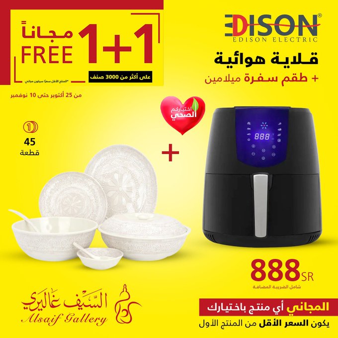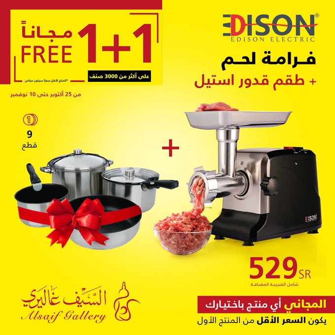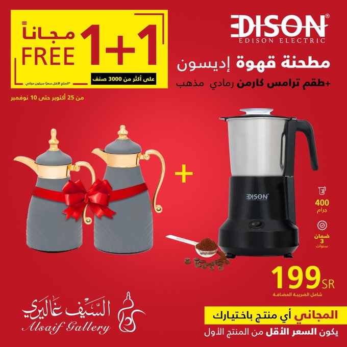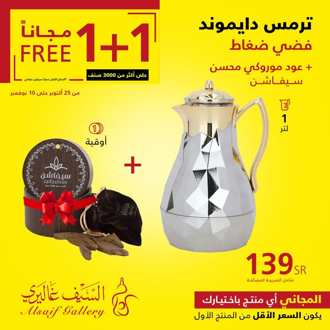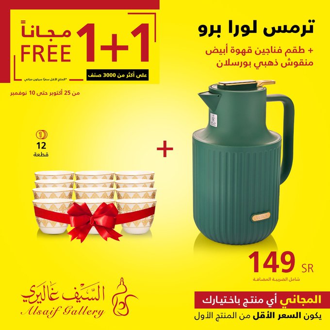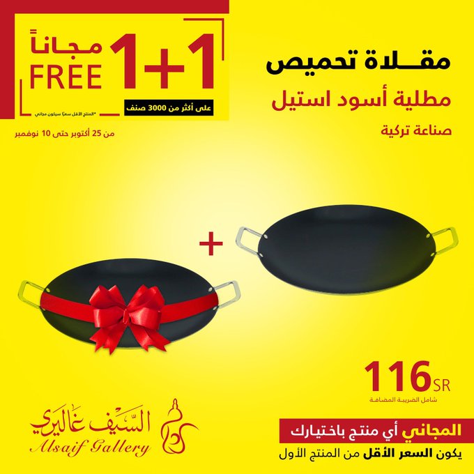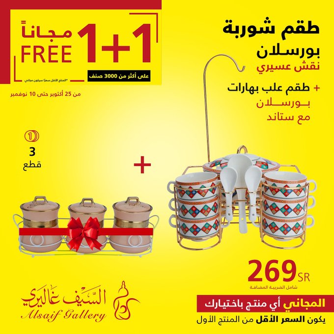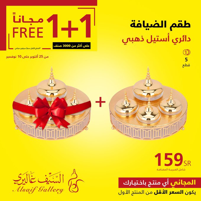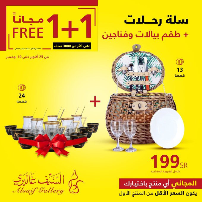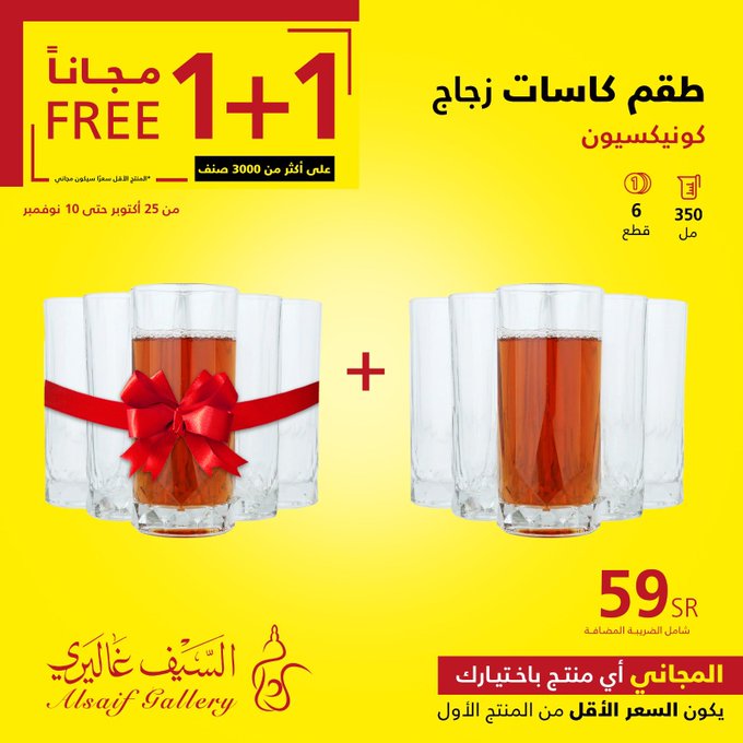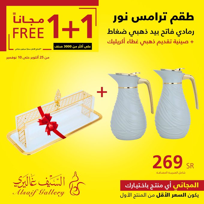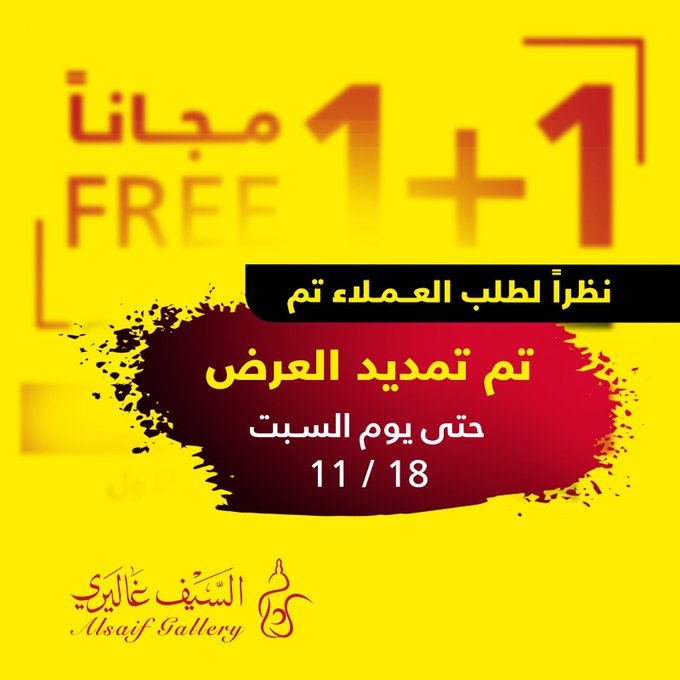 In response to customer demand, the 1+1 offer has been extended until Saturday, November 18, in all branches and the app Seize the opportunity. عروض السيف غاليري استجابة لطلب العملاء تم تمديد عرض 1+1 حتى يوم السبت 18 نوڤمبر في جميع الفروع والتطبيق اغتنموا الفرصة .. للتسوق من خلال الرابط التالي