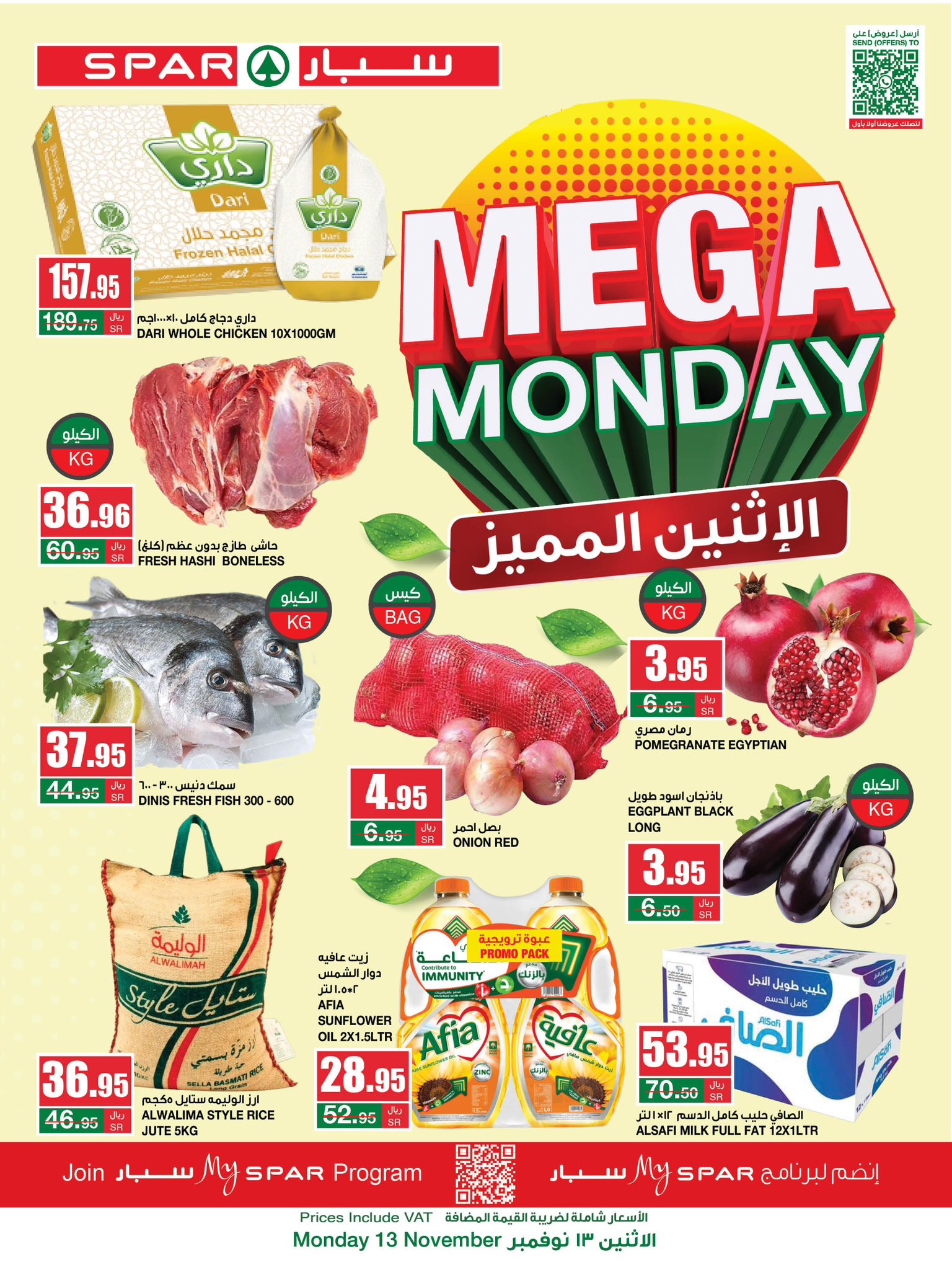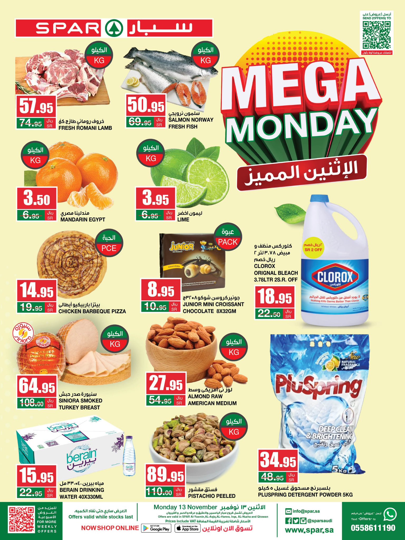 Don't miss the special Monday offers at Spar Markets.. Different offers to suit your needs Valid for one day only, November 13, or while supplies last عروض الإثنين من أسواق سبار لا تفوتك عروض الإثنين المميز في أسواق سبار.. عروض مختلفة تناسب إحتياجاتك سارية لمدة يوم واحد فقط 13 نوفمبر أو حتى نفاذ الكمية لمتابعة بقية العروض أنتقل للصفحةا لتالية