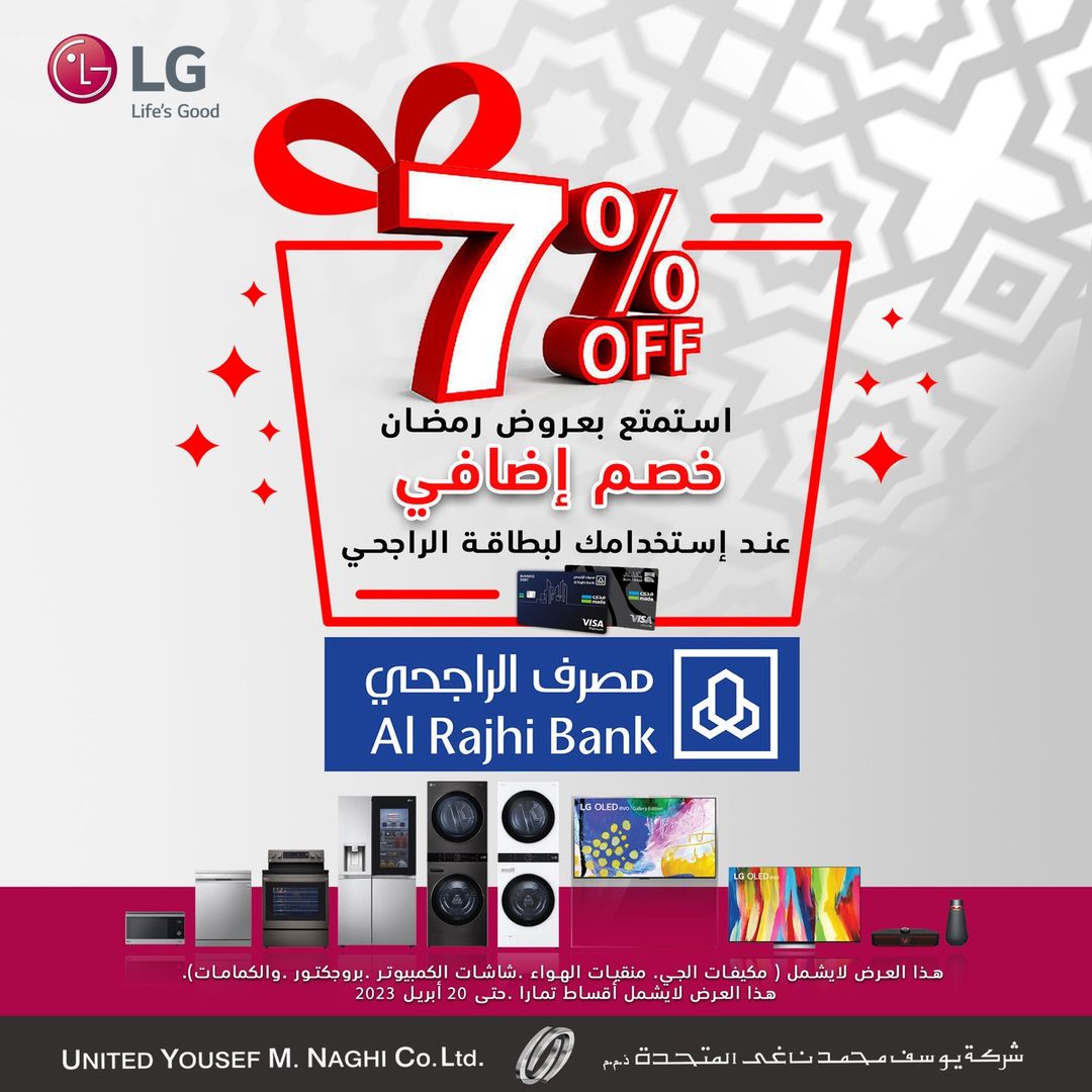 استمتع بعروض رمضان.. خصم إضافي 7% عند إستخدامك لبطاقة الراجحي حتى 20 أبريل 2023