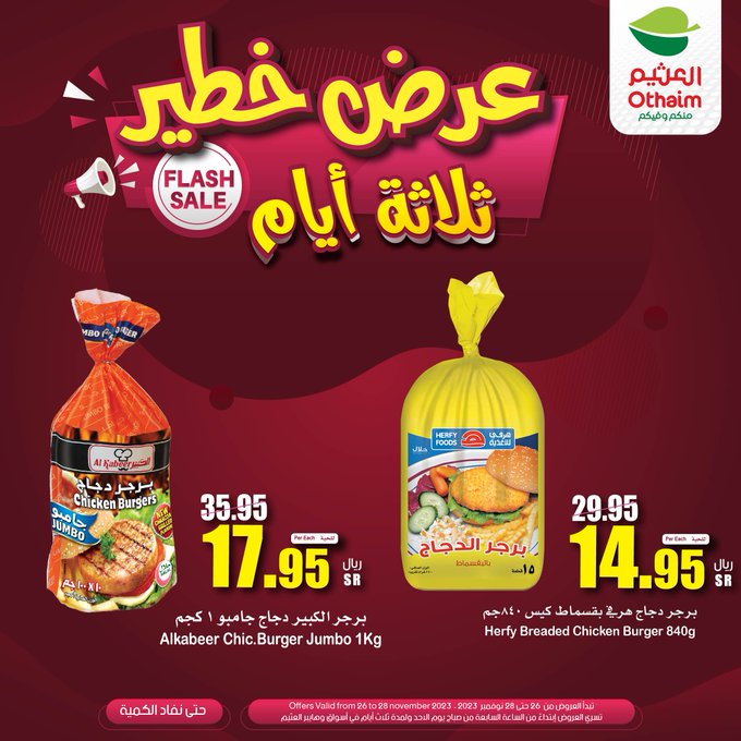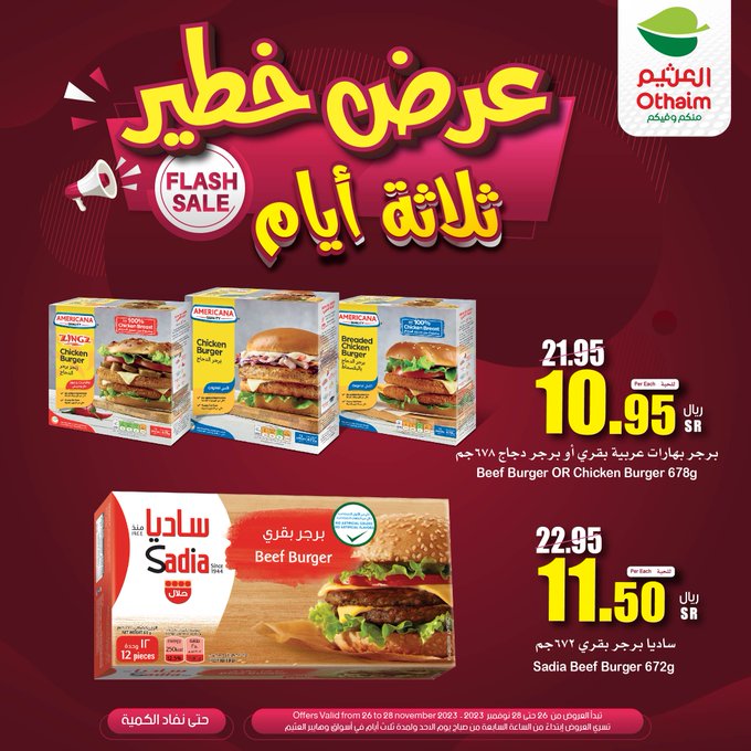100% free credit for thousands of customers.. What are you waiting for? Take advantage of the amazing offers from Al Othaim Markets at even better prices for 3 days only Go to Al-Othaim, you are the winner Terms and conditions apply Offer ends November 28 or until supplies last عروض اسواق العثيم لفترة محدودة %100 رصيد مجاني لآلاف العملاء.. وش تنتظر؟ استغل العروض الرهيبة من اسواق العثيم وبأسعار ولا أحلى ولمدة ٣ ايام بس روح للعثيم انت الكسبان تطبق الشروط والأحكام ينتهي العرض 28نوفمبر او حتى نفاد الكمية