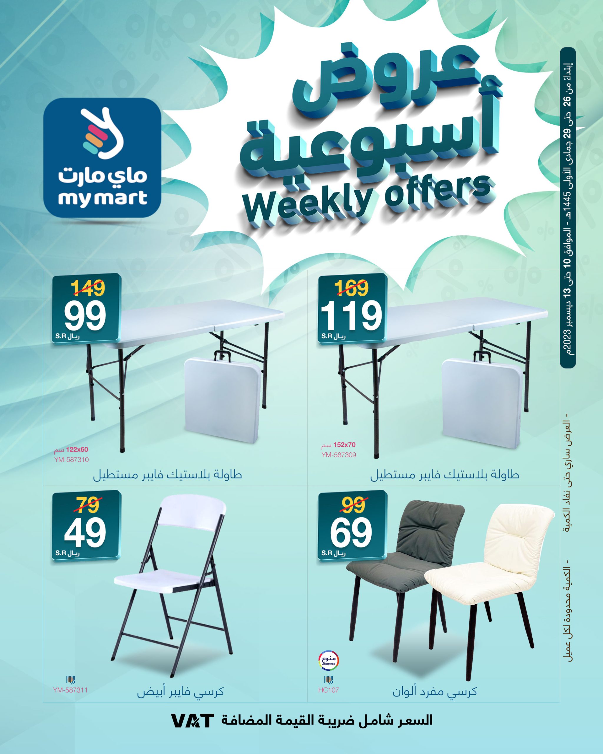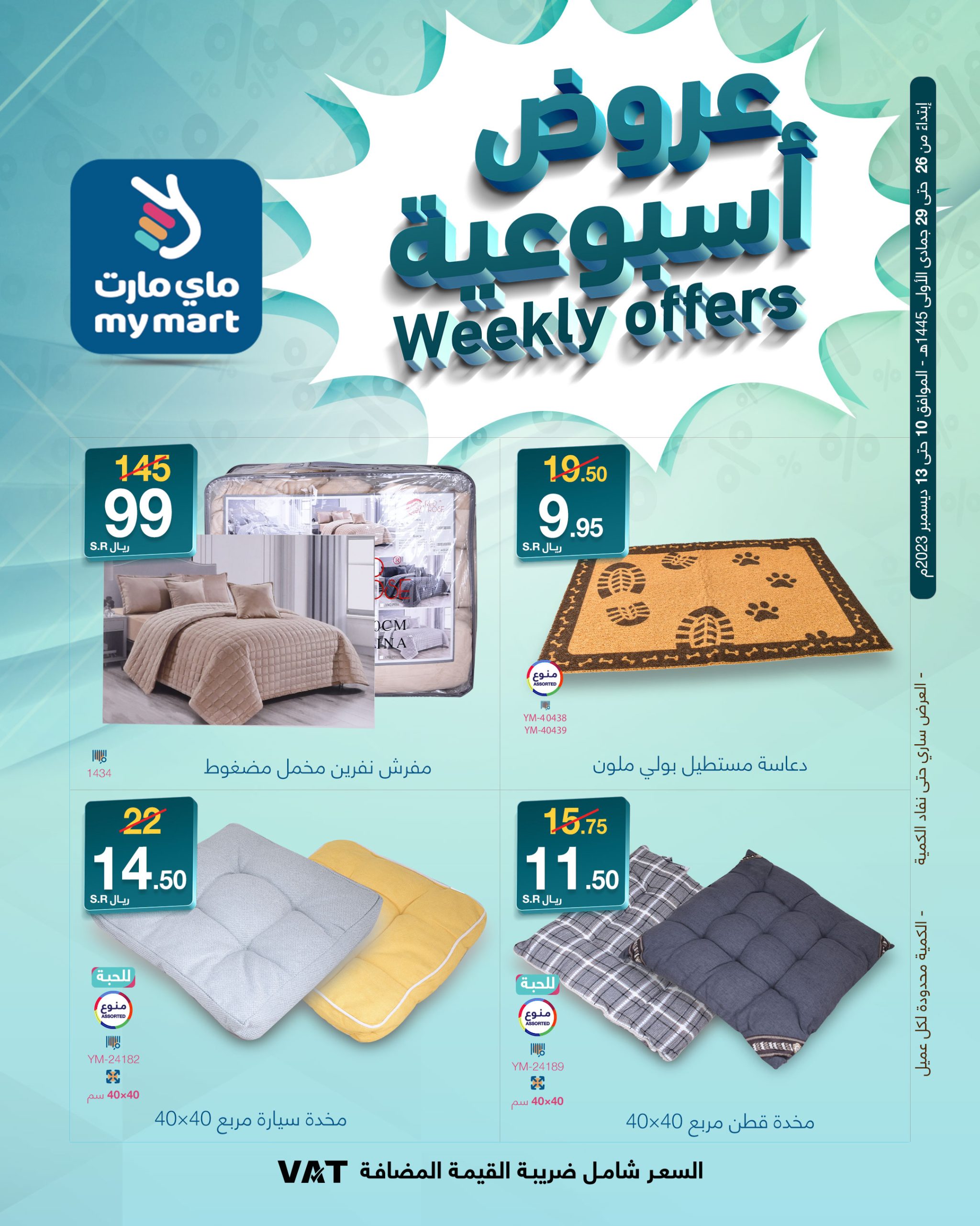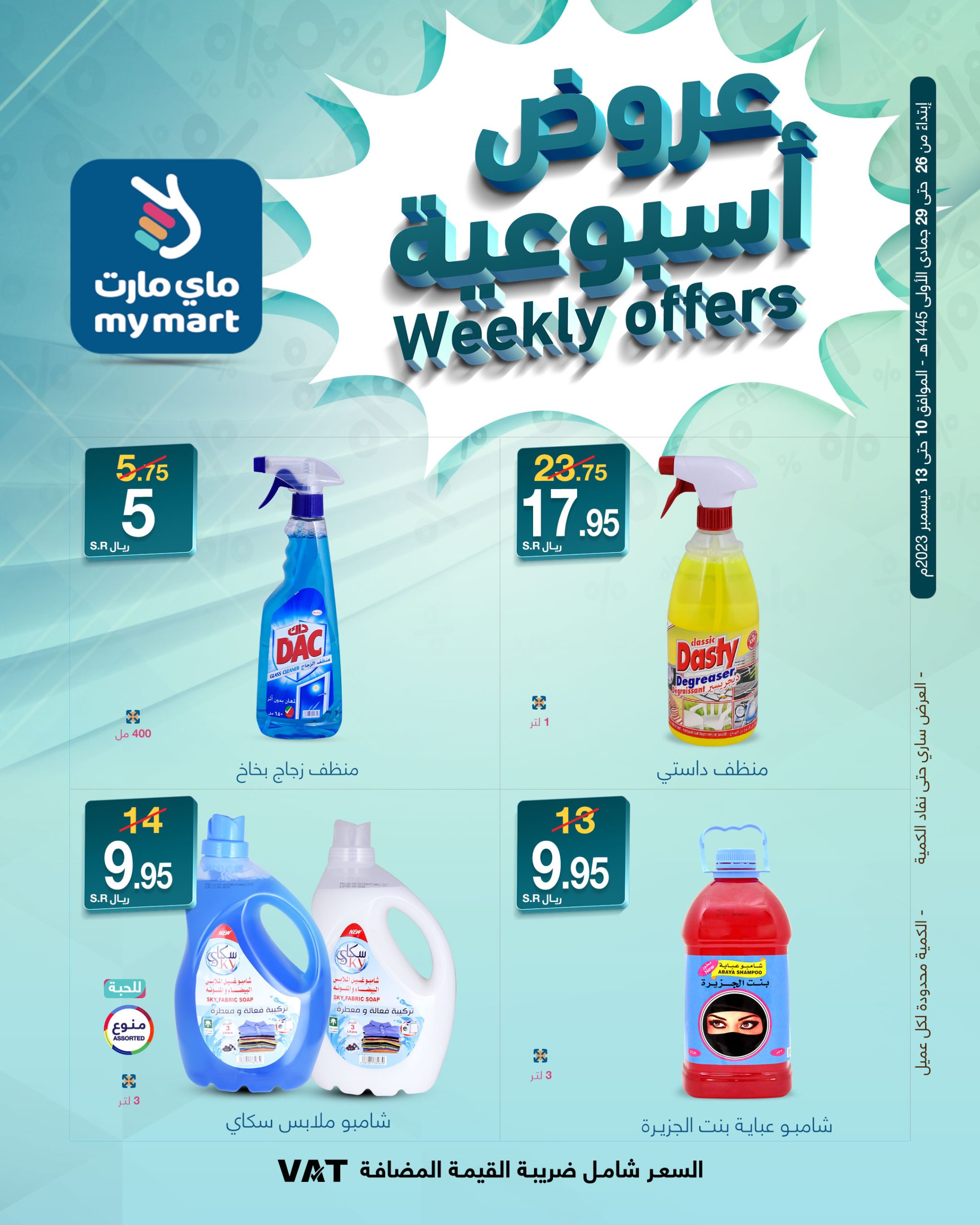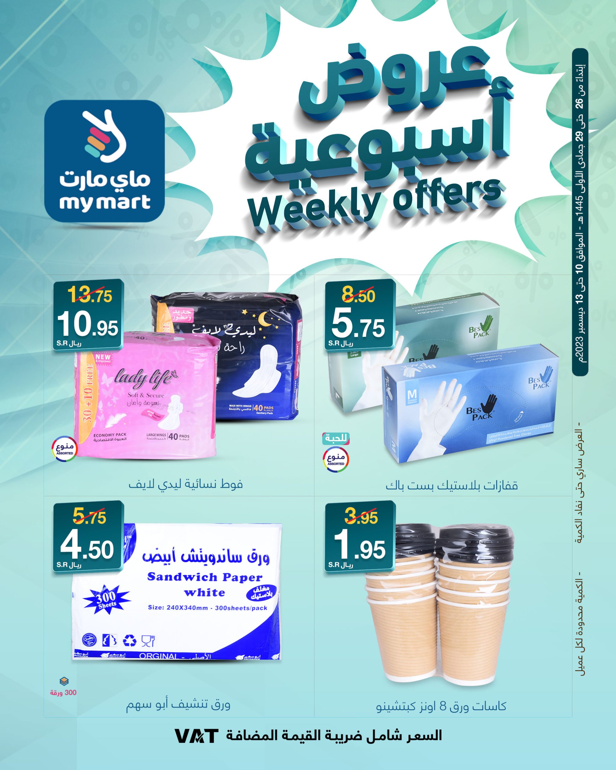 Special offers for Riyadh branches.. Don't miss My Mart's special offers and discounts Valid in all branches in Riyadh and the online store Corresponding to December 10 until December 13, 2023 AD عروض ماي مارت عروض خاصة لفروع الرياض.. لا تفوتك عروض وتخفيضات ماي مارت المميزة سارية في جميع الفروع بالرياض والمتجر الالكتروني تبدأ العروض من 26جمادي الأول حتى 29جمادي الاول 1445هـ الموافق 10 ديسمبر حتى 13ديسميبر 2023م لمتابعة بقية العروض أنتقل للصفحةا لتالية
