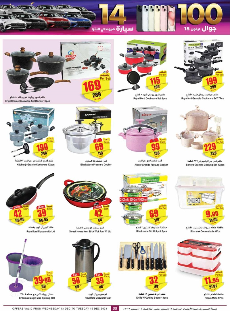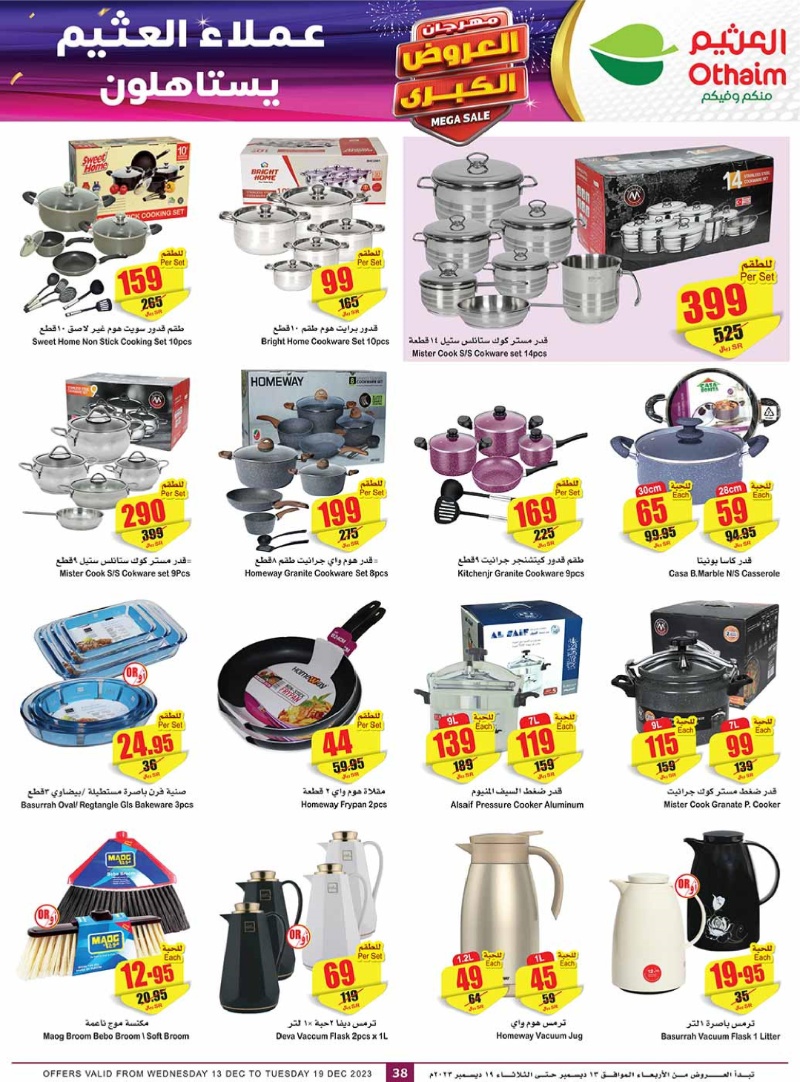 عروض أسواق عبدالله العثيم المنطقة الوسطى الأسبوعية بمناسبة حصول سلسلة أسواق عبدالله العثيم على جائزة أفضل الأسعار؛ أعلنت الشركة عن مهرجان العروض الكبرى.. خصومات مميزة والعديد من المفاجآت والعروض. سحب يومي على 14 سيارة و100 جوال خلال 14يوم في كل فروعهم! تبدأ العروض الأربعاء 13 ديسمبر و تنتهي الثلاثاء 19 ديسمبر او حتى نفاد الكمية؛ حيث تقدم أسواق العثيم مجموعة واسعة من المنتجات التي تشمل الأغذية الطازجة، المواد المنزلية، والإلكترونيات المصممة لتلبية احتياجات العملاء اليومية، مع التركيز على توفير أفضل الأسعار وأعلى جودة ممكنة. أسعار بعض الخضراوات والمنتجات الطازجة: كيلو طماطم بـ 3.95 ريال ، ملفوف محشي بـ 1.5 ريال و زهرة بـ 3.95 ريال تفاح أحمر سلة بـ 6.95 ريال للكيلو وكذلك الأخضر بـ 6.95 ريال بينما التركي بـ 4.75 ريال الليمون بـ 4.5 ريال للكيلو والبرتقال بـ 3.95 ريال للكيلو عروض و أسعار الالكترونيات: خلاطات نيكاي بسعر يبدأ من 89 ريال وخلاط جيباس بـ 89 ريال بينما خلاط ماركة دوتس بـ 99 ريال صانع طعام جيباس بـ 139 ريال والمفرمة الكهربائية ماركة دوتس بـ 75 ريال غلايات مياه بسعر يبدأ من 45 ريال ودفايات كهربائية بسعر يبدأ من من 80 ريال لمركة كولين بينما دفاية الزيت ماركة دوتس بسعر يبدأ من 190 ريال لمتابعة بقية العروض أنتقل للصفحةا لتالية لمتابعة بقية العروض أنتقل للصفحةا لتالية لمتابعة بقية العروض أنتقل للصفحةا لتالية لمتابعة بقية العروض أنتقل للصفحةا لتالية لمتابعة بقية العروض أنتقل للصفحةا لتالية لمتابعة بقية العروض أنتقل للصفحةا لتالية لمتابعة بقية العروض أنتقل للصفحةا لتالية لمتابعة بقية العروض أنتقل للصفحةا لتالية