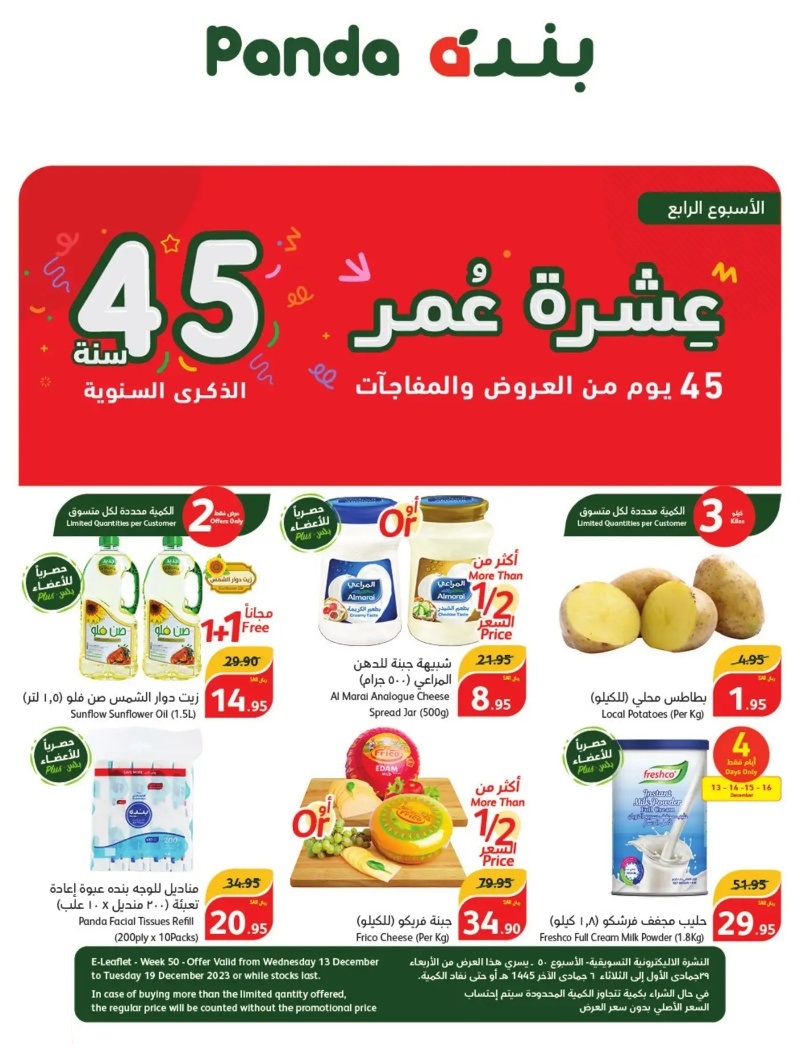 تسري هذه العروض من الأربعاء 13 ديسمبر إلى الثلاثاء 19 ديسمبر 2023م أو حتى نفاد الكمية.