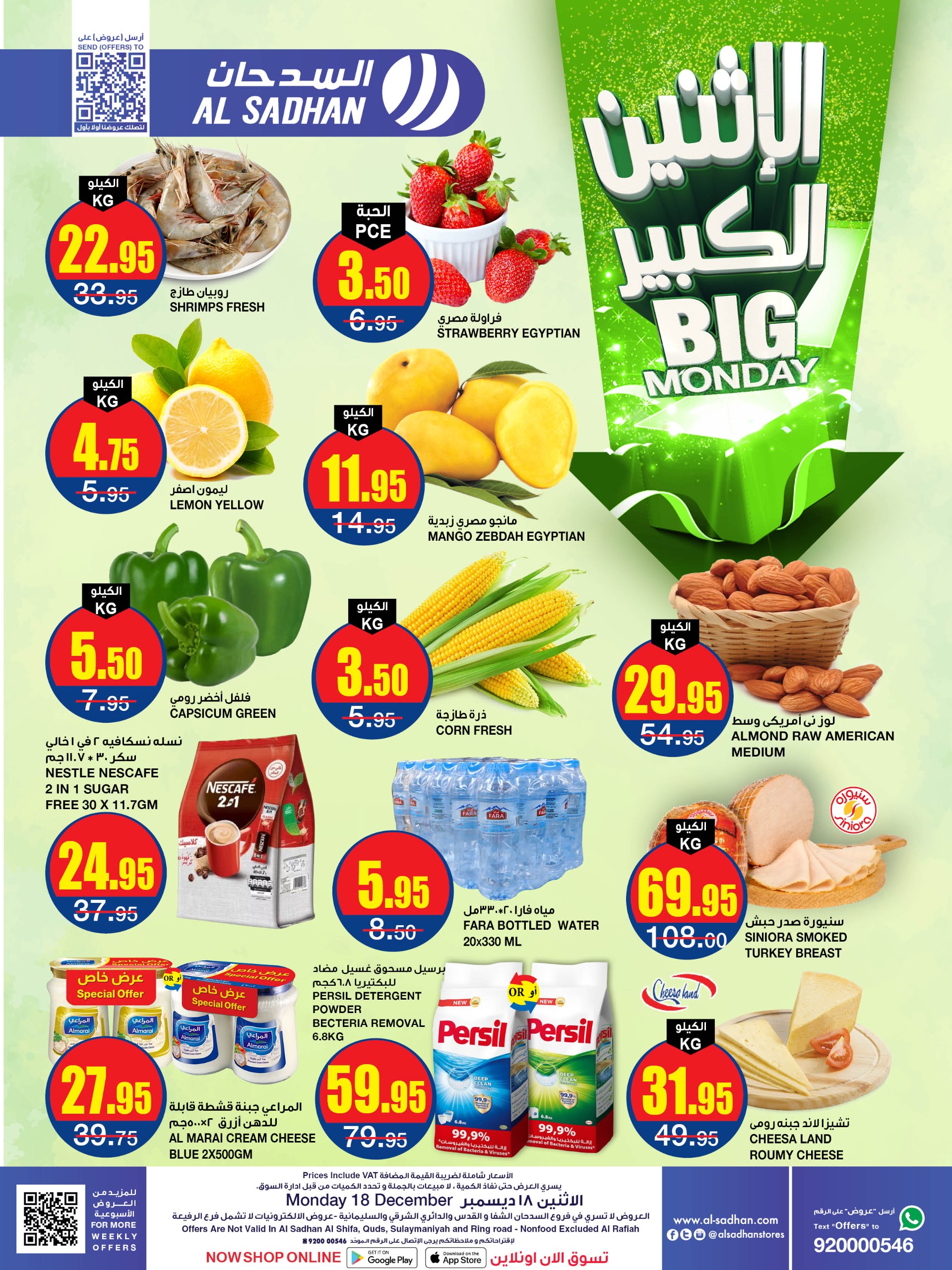 لا تفوت عروض الإثنين 18 ديسمبر ولمدة يوم واحد على المنتجات الضرورية من كل الأقسام الخضار والمخابز ومستلزمات المنزل وأكثر بأسعار تناسب الجميع .