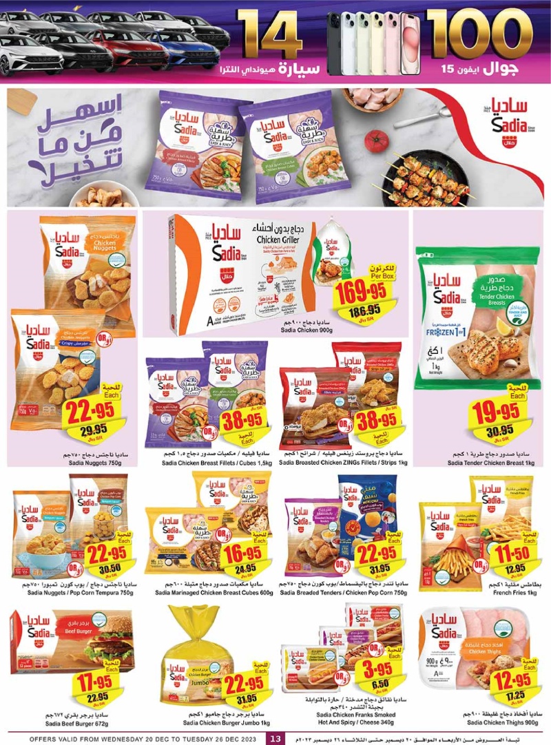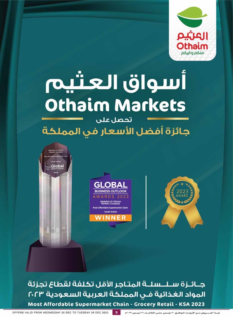 عروض أسواق عبدالله العثيم المنطقة الوسطى الأسبوعية بمناسبة حصول سلسلة أسواق عبدالله العثيم على جائزة أفضل الأسعار؛ أعلنت الشركة عن مهرجان العروض الكبرى.. خصومات مميزة والعديد من المفاجآت والعروض. سحب يومي على 14 سيارة و100 جوال خلال 14يوم في كل فروعهم! تبدأ العروض الأربعاء 20 ديسمبر و تنتهي الثلاثاء 26 ديسمبر او حتى نفاد الكمية؛ حيث تقدم أسواق العثيم مجموعة واسعة من المنتجات التي تشمل الأغذية الطازجة، المواد المنزلية، والإلكترونيات المصممة لتلبية احتياجات العملاء اليومية، مع التركيز على توفير أفضل الأسعار وأعلى جودة ممكنة. أسعار بعض الخضراوات والمنتجات الطازجة: كيلو طماطم بـ 3.95 ريال ، بصل بـ 1.95 ريال و زهرة بـ 3.75 ريال تفاح رويال جالا سلة بـ 5.95 ريال للكيلو والفراولة علبة بـ3.25 ريال عروض و أسعار الالكترونيات: شاشات تبدأ من 529 ريال وايفون 12 125 جيجا بـ 1999 ريال صانعة قهوة كيون بـ 85 ريال غلايات مياه بسعر يبدأ من 45 ريال ودفايات كهربائية بسعر يبدأ من 55 ريال لمركة نيكاي بينما دفاية الزيت ماركة دوتس بسعر يبدأ من 189 ريال لمتابعة بقية العروض أنتقل للصفحةا لتالية لمتابعة بقية العروض أنتقل للصفحةا لتالية لمتابعة بقية العروض أنتقل للصفحةا لتالية لمتابعة بقية العروض أنتقل للصفحةا لتالية لمتابعة بقية العروض أنتقل للصفحةا لتالية لمتابعة بقية العروض أنتقل للصفحةا لتالية لمتابعة بقية العروض أنتقل للصفحةا لتالية