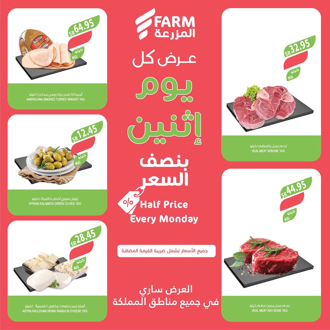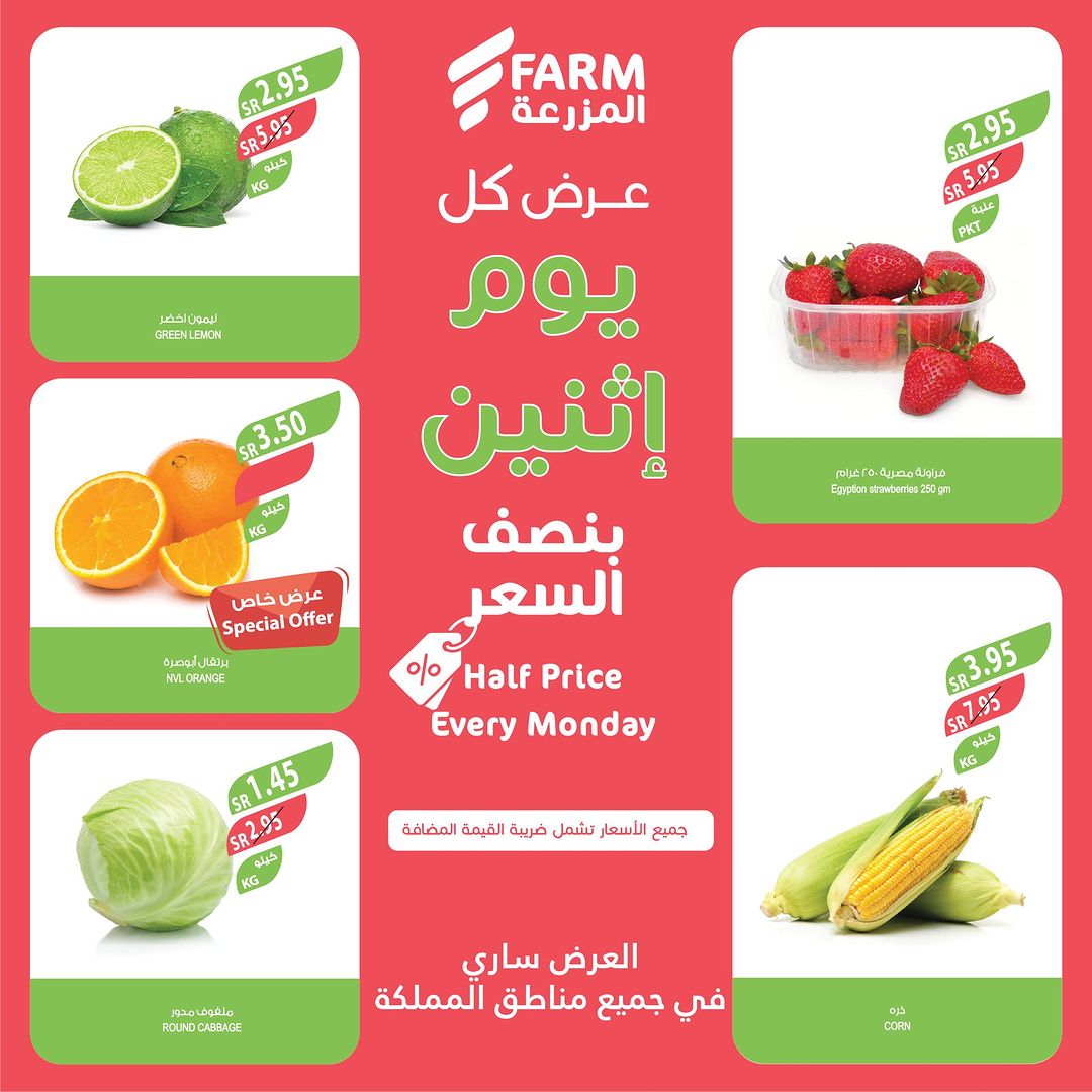 استمتع بتجربة تسوق مختلفة ومميزة مع أسواق المزرعة مع عروض نصف السعر على منتجات بجودة عالية كل يوم اثنين