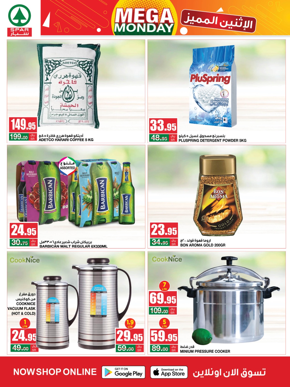 تتميز عروض سبار بتقديم خصومات على مجموعة متنوعة من السلع الغذائية، بما في ذلك البقوليات، الأطعمة المعلبة، المشروبات، والحلويات. كما تقدم سبار عروضًا خاصة على المنتجات الطازجة مثل الفواكه والخضروات، اللحوم والأسماك، مما يضمن للعملاء الحصول على منتجات طازجة وذات جودة عالية بأسعار مخفضة.