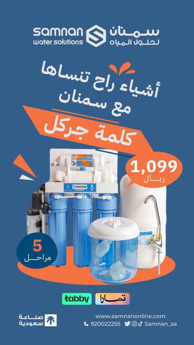 عروض سمنان لحلول المياه اروي عطشك بعد الصيام بماء صحي مفلتر من برادة وفلتر سمنان للطلب من خلال الرابط التالي للتواصل 920022255