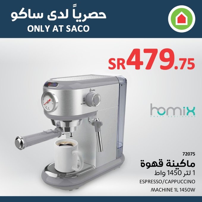 حصرياً لدى ساكو.. آلات القهوة من هوميكس بأسعار مميزة