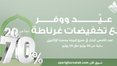 عروض الأجهزة الرياضية من غرناطة للرياضة تخفيضات عيد الاضحى مازالت مستمرة.. خصومات تبدأ من %20 حتى %70 تسري في جميع…