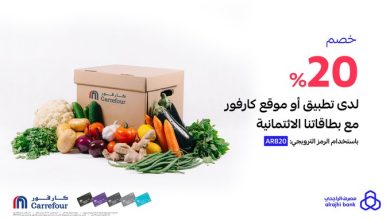 عرض الويكند من اسواق كارفور لا تفوّت عرض نهاية الأسبوع! مقاضيك من تطبيق أو موقع “كارفور” بخصم 20% حصريًا مع…